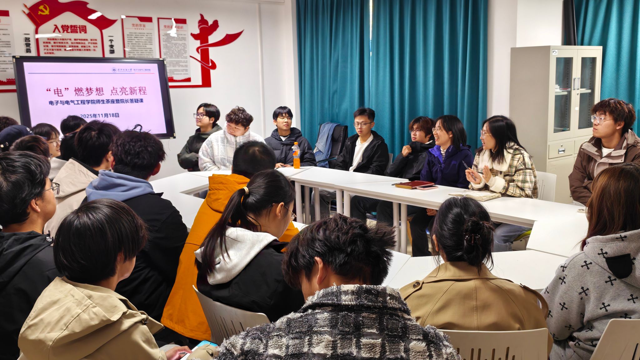 在阳光校区“电燃梦想”学生社区服务驿站开展“师生茶座”暨院长答疑课活动。副院长韩谷静教授担任主讲人,2025级辅导员陈宇凡以及拔尖创新班全体同学参加本次活动。