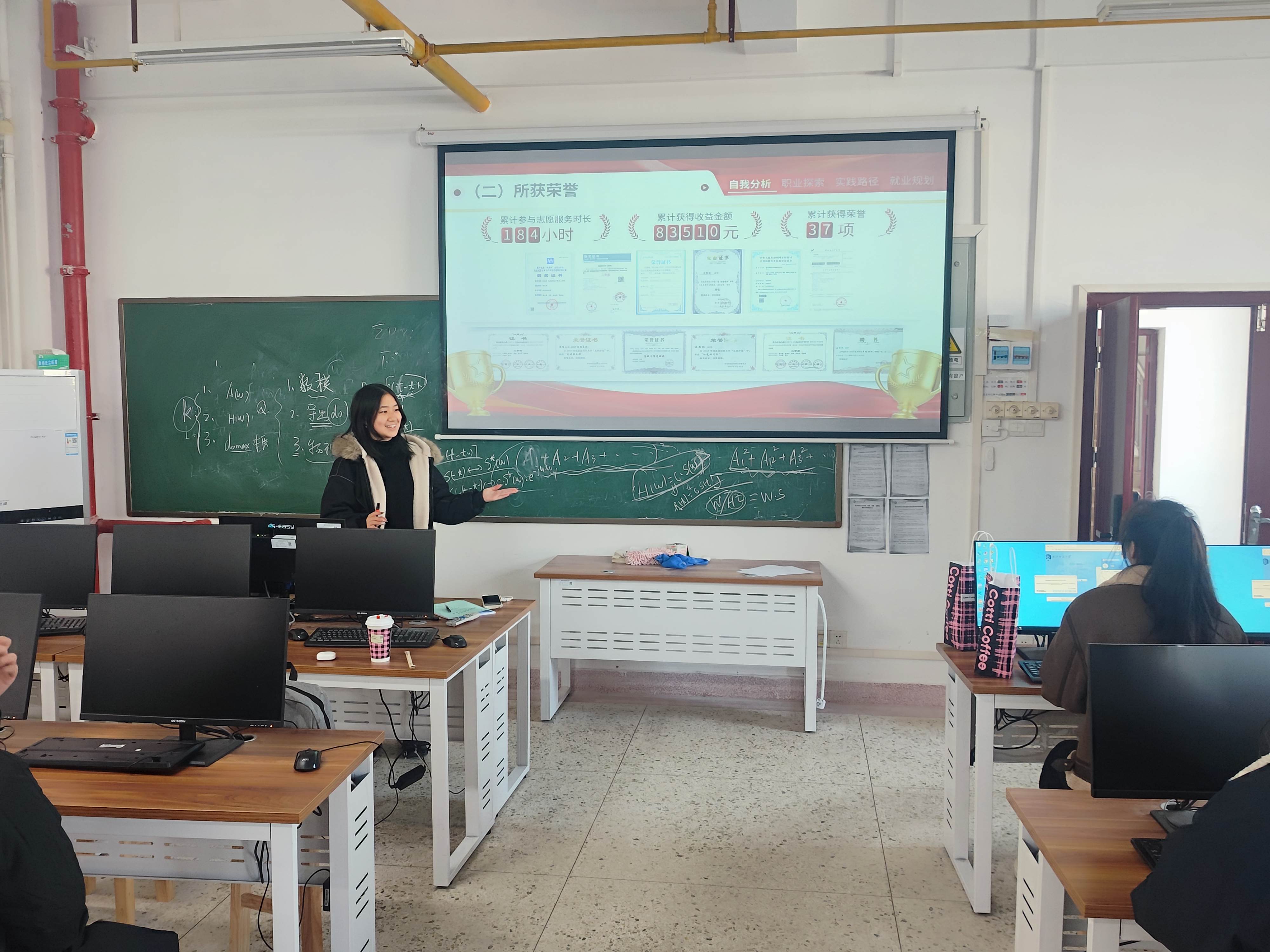 王荣辉同学以时间轴形式,清晰展示了自己从大一至大三的竞赛成长轨迹:从蓝桥杯EDA国二,到电赛省三、嵌入式大赛国二,再到集创赛海云捷迅杯国二等多项荣誉。他不仅分享了STM32、RTOS、Linux、FPGA等软硬件开发的学习路径,还展示了自主设计的多层PCB板及FPGA开发成果。他特别谈到,竞赛经历直接助力其职业规划——从嵌入式工程师到FPGA与IC设计方向,每一步都扎实清晰。他鼓励同学们:“埋骨何须桑梓地,人生无处不青山”,主动参与、敢于尝试才能在竞争中获得真正的成长。