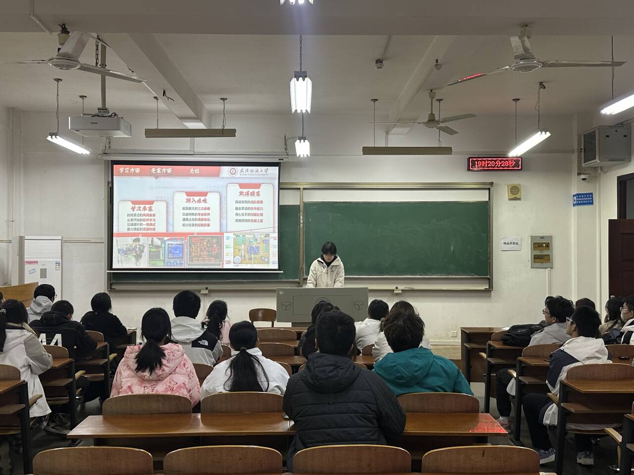分享会分为两个环节。在第一阶段的主题报告中,四位分享人结合自身经历,分别从学业精进、科研探索、社会实践与综合素质提升等多个维度,生动讲述了他们的奋斗历程与心得体会,为新生们描绘了清晰可行的成长路径。