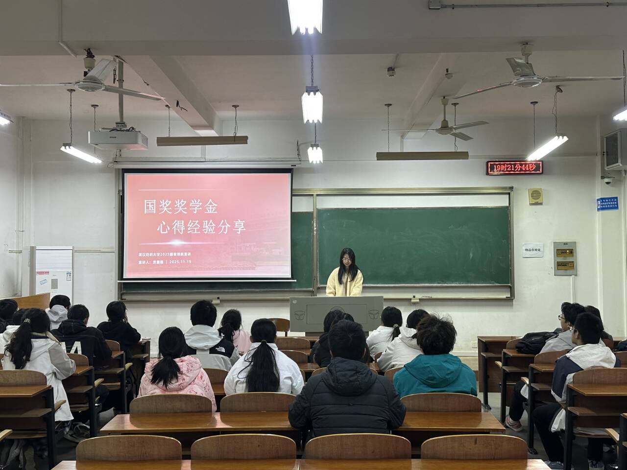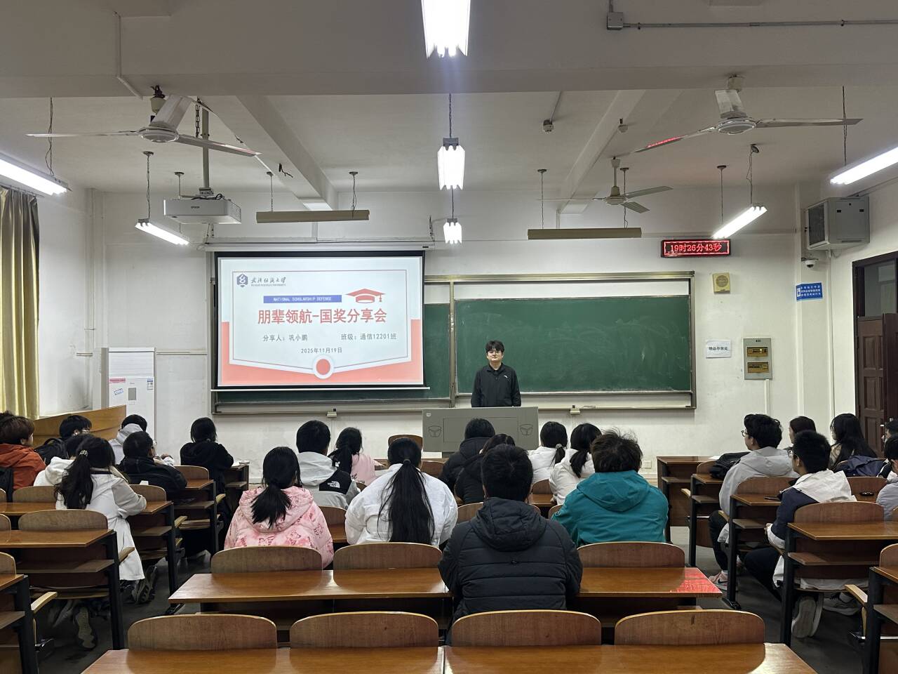 举办“朋辈领航:国家奖学金获得者分享会”。活动邀请了四位荣获国家奖学金的优秀学长学姐进行经验分享,现场气氛热烈。