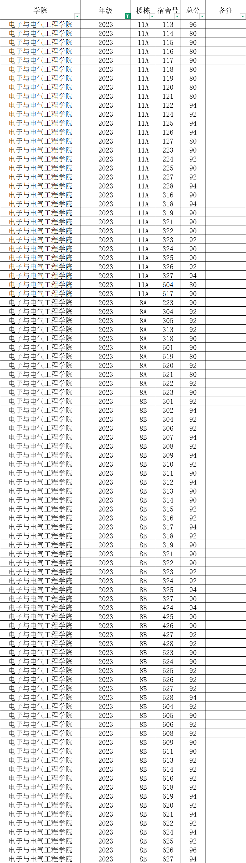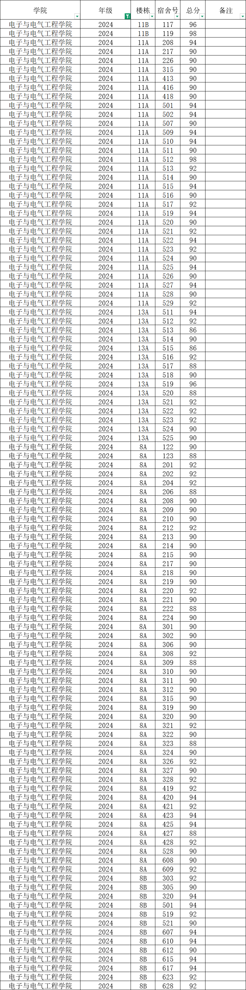 各班级,各寝室: