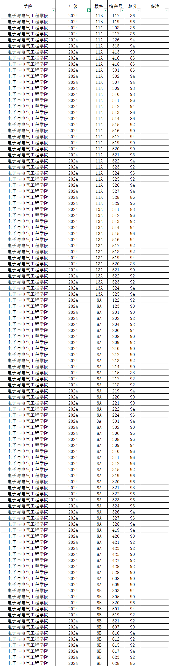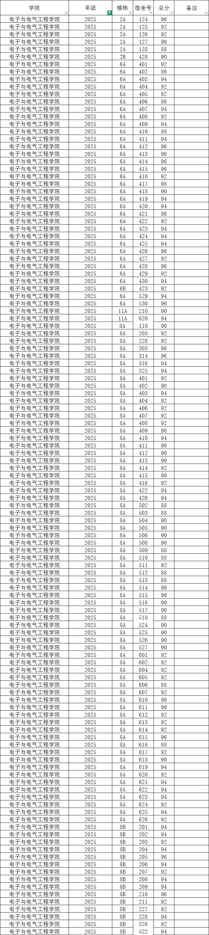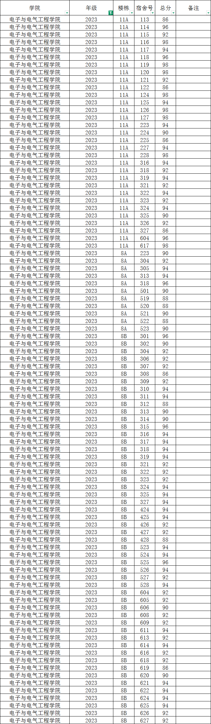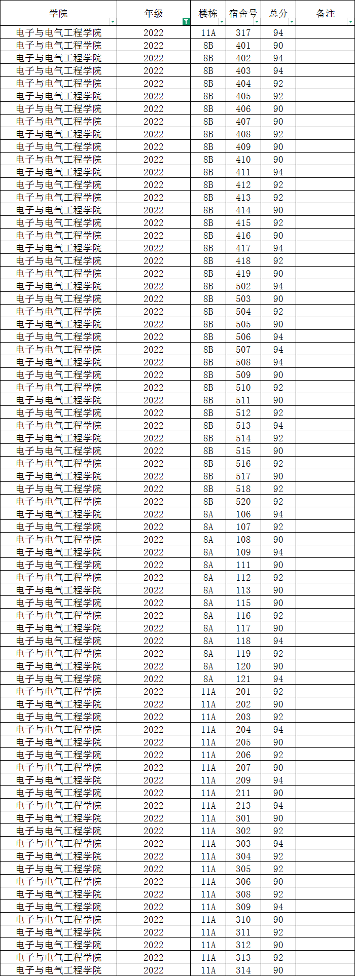 各班级,各寝室: