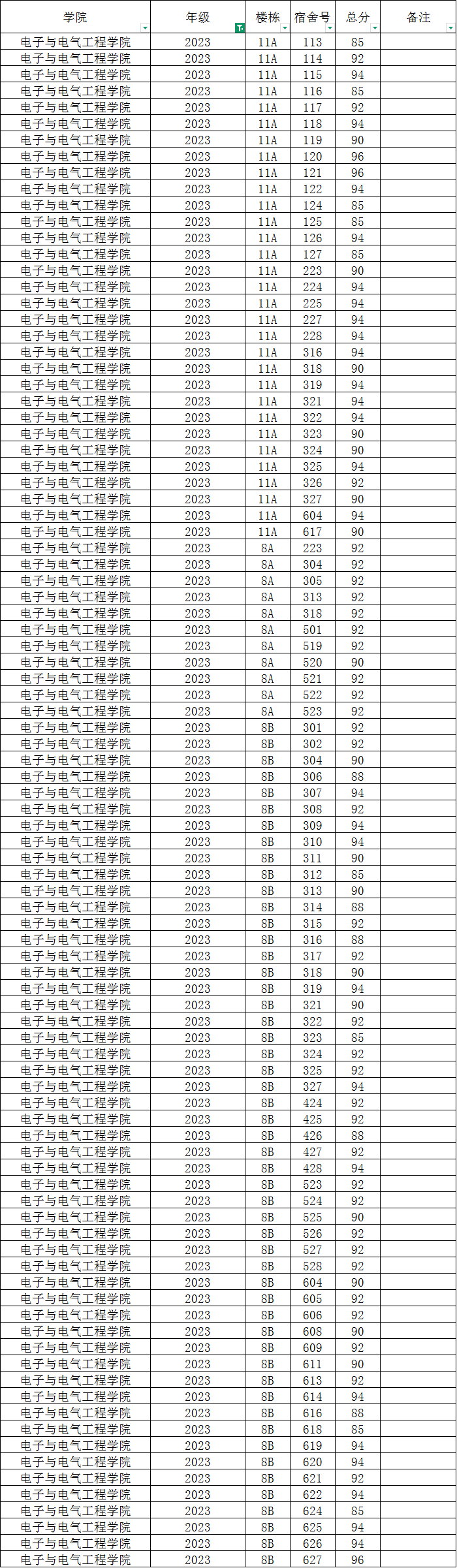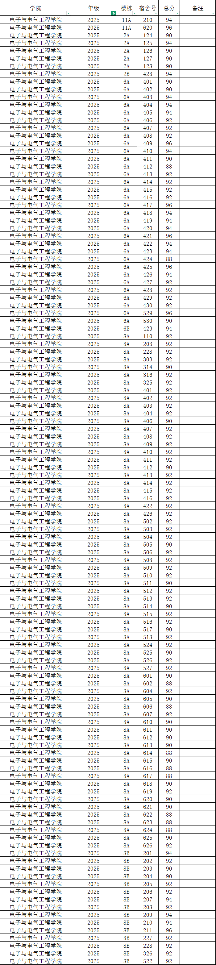 各班级,各寝室: